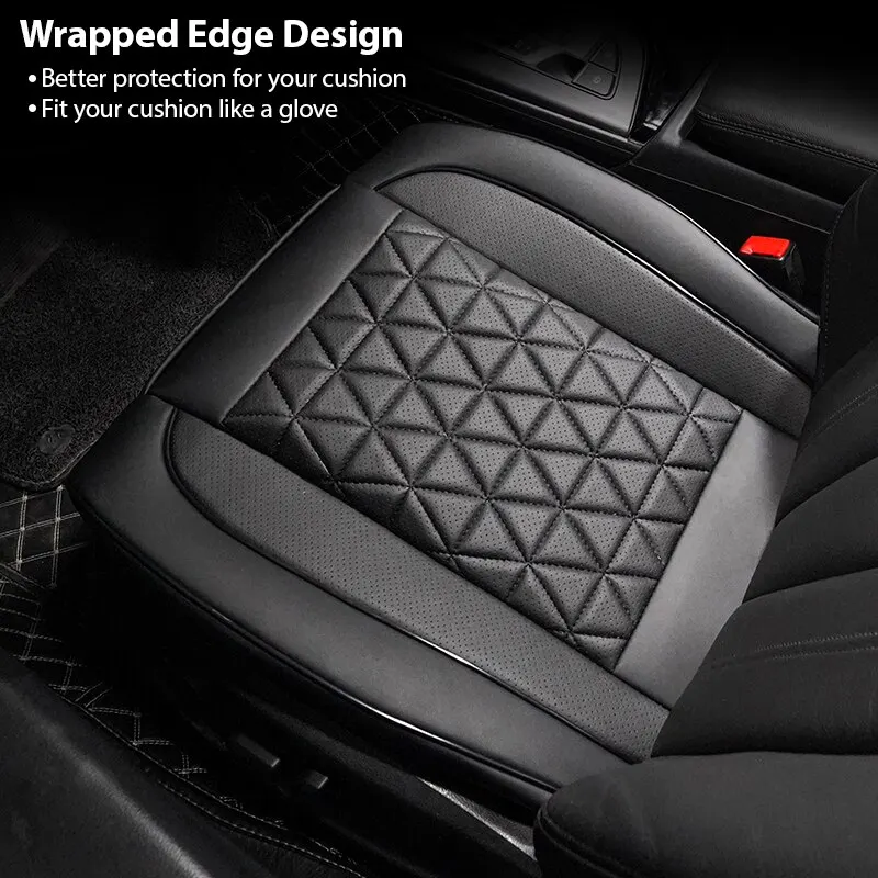 Premium PU Leather Material-The auto seat cover is made of high-grade soft PU leather, waterproof easy to scrub, durable and good breathability. Built-in a layer of highly flexible sponge, four seasons applicable. Maintainthe comfort of the buttocks, helps relieve pressure on hips and thighs when driving for a long time. When the seat cushion is stained,just wipe it gently with a dry towel.