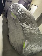 Normal case on Kia Stonic. Last year I ordered a size M, it was without a sling, which is attached to the bottom of the car, in size L there is such and it shakes less the cover in the wind. With the Israeli sun the year will survive (verified). The car soars (as synthetics). The biggest minus.