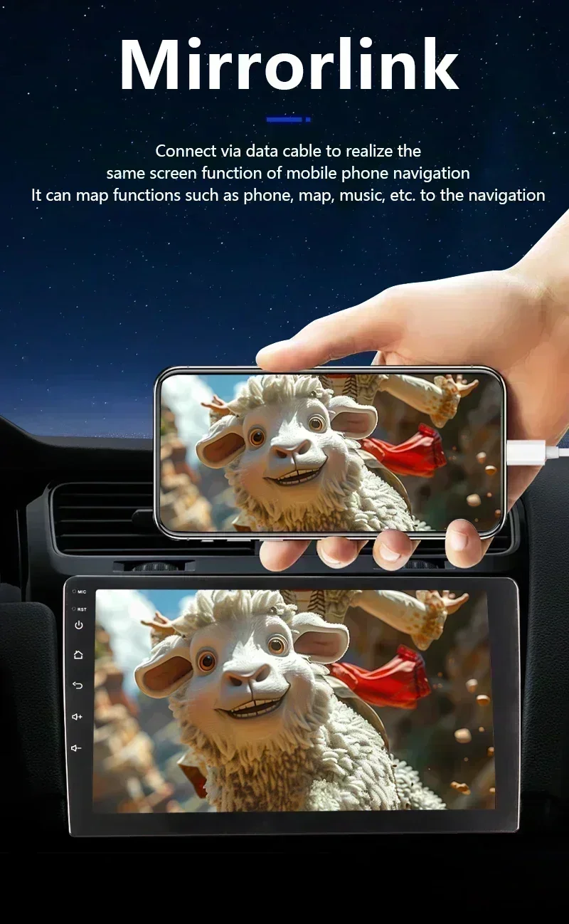 The radio player supports iPhone and Android phones to use the mirror link function. Connect to the radio, the screen of the mobile phone can be projected onto the radio screen.