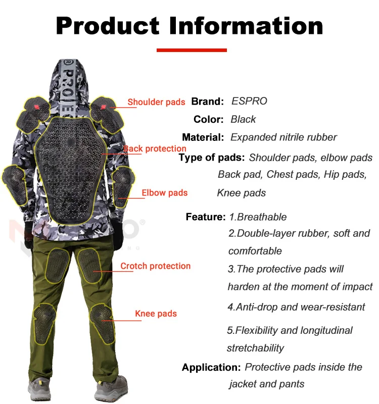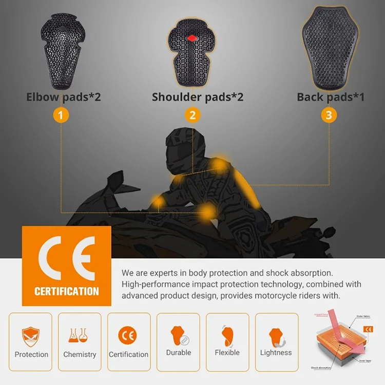 With CE Certification Motorcycle Jackets Protection Pads Riding Armor Back Shoulder Elbow Pads Rider Motocross Protective Gear
