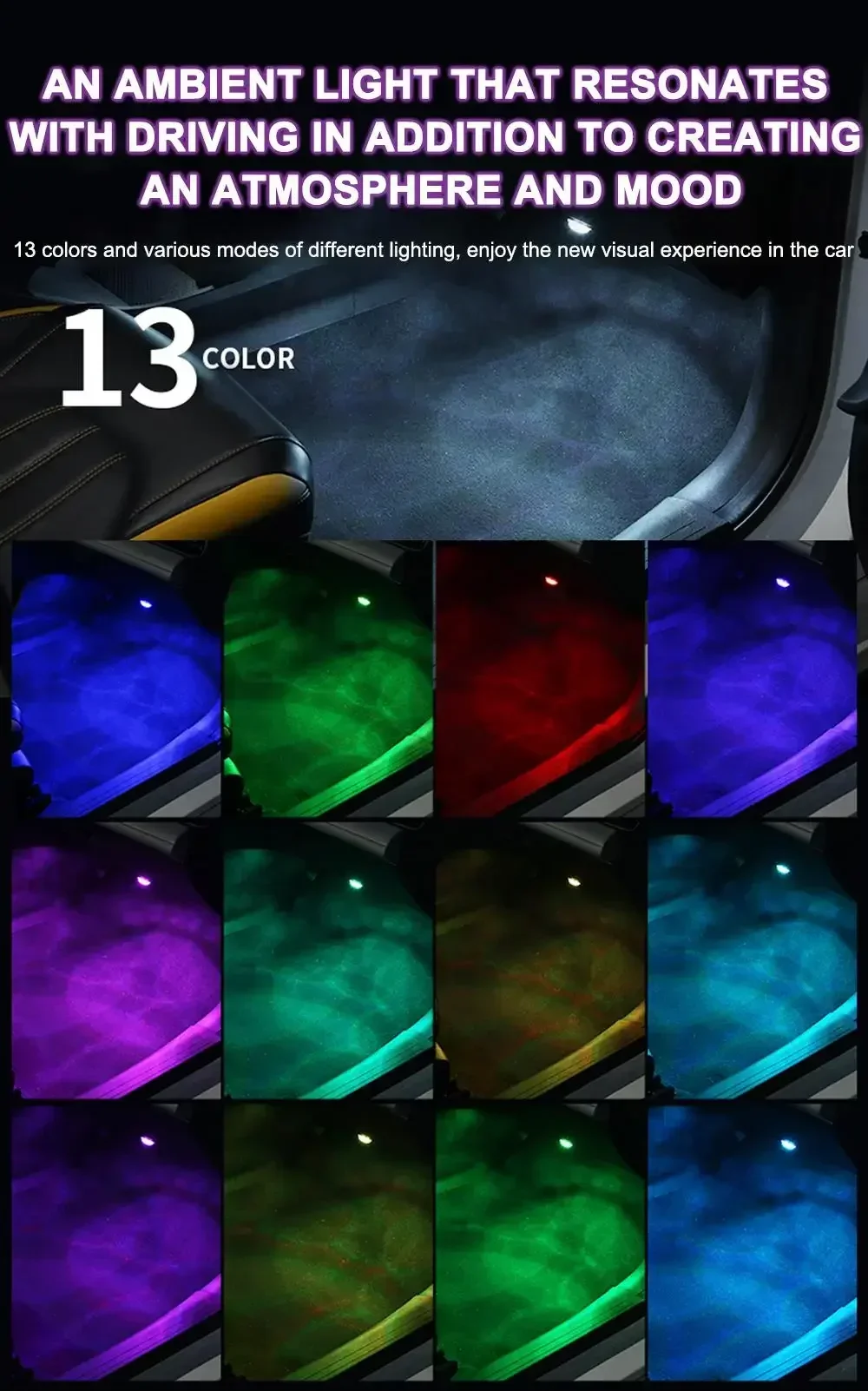 Wireless Adhesive LED Car Interior Ambient Light Remote Control Decoration Auto Roof Foot Atmosphere Lamp with Battery Colorful