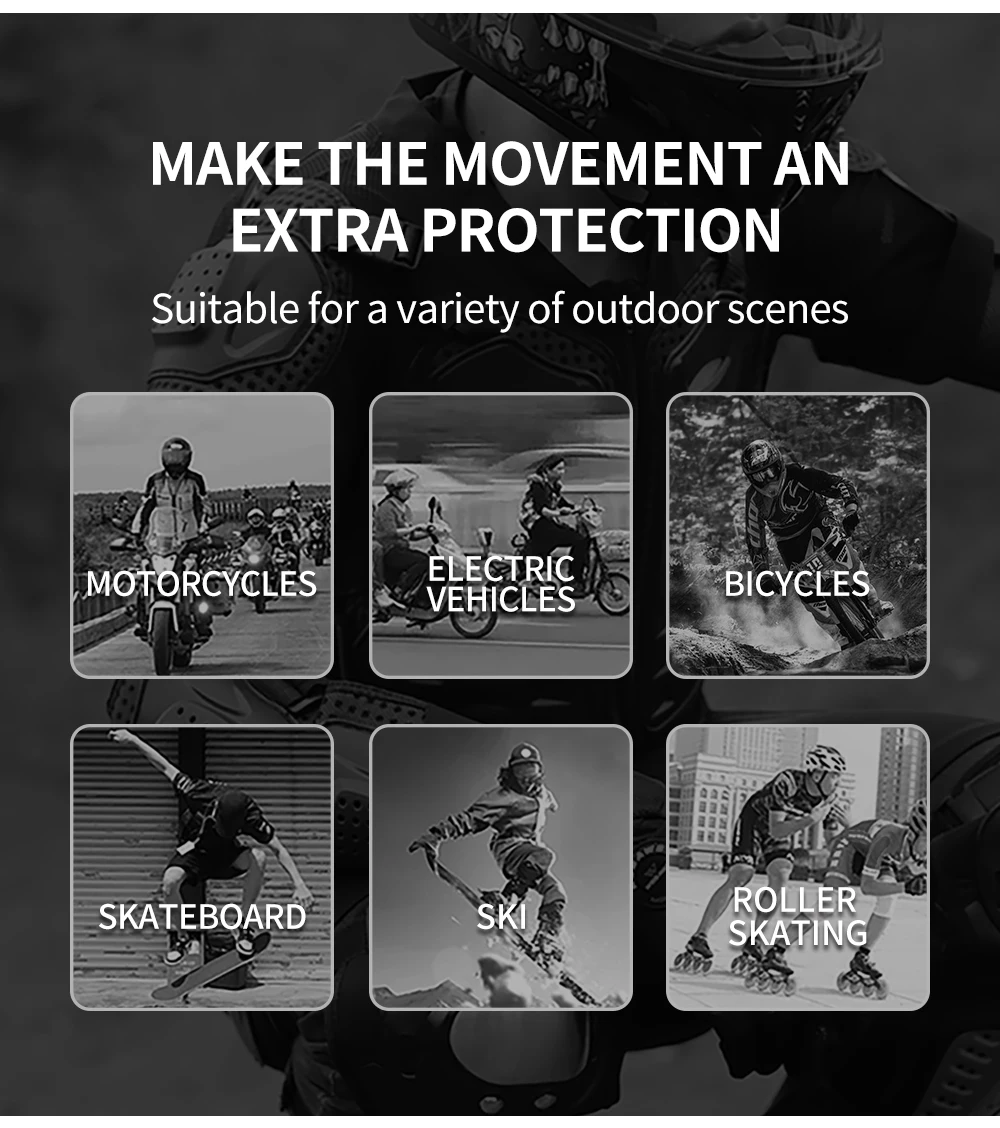 • Suit for: Motorcycle racing, motocross, MTB cycling, Skateboard, Skiing, Snowboarding and etc.